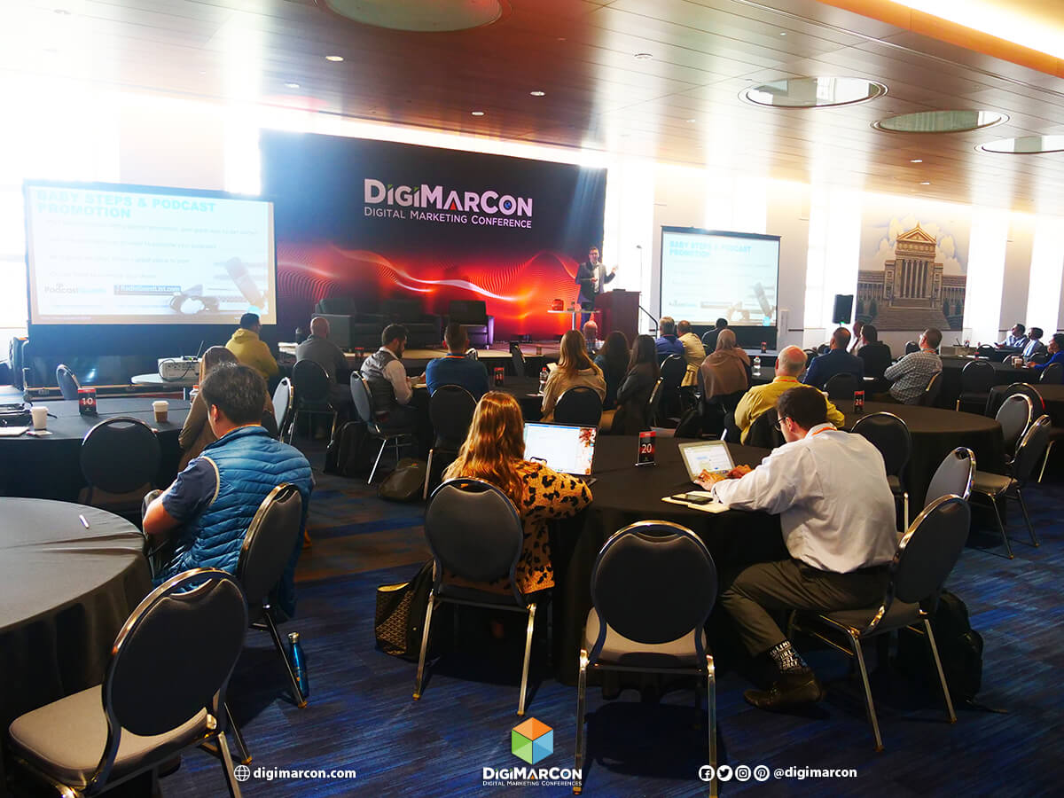 At DigiMarCon Conferences you are never ‘left in the dark’…. literally, in a large room far away from the stage and speakers, crushed in tight theater seating, without even a table, while sitting in the dark. At DigiMarCon all delegates have premium meeting space in luxurious ballroom well-lit spaces, with comfortable seating with table enabling delegates to use their laptop to take notes with ample charging facilities onsite in a comfortable space to learn and thrive. All tables are situated close with direct view of the stage.